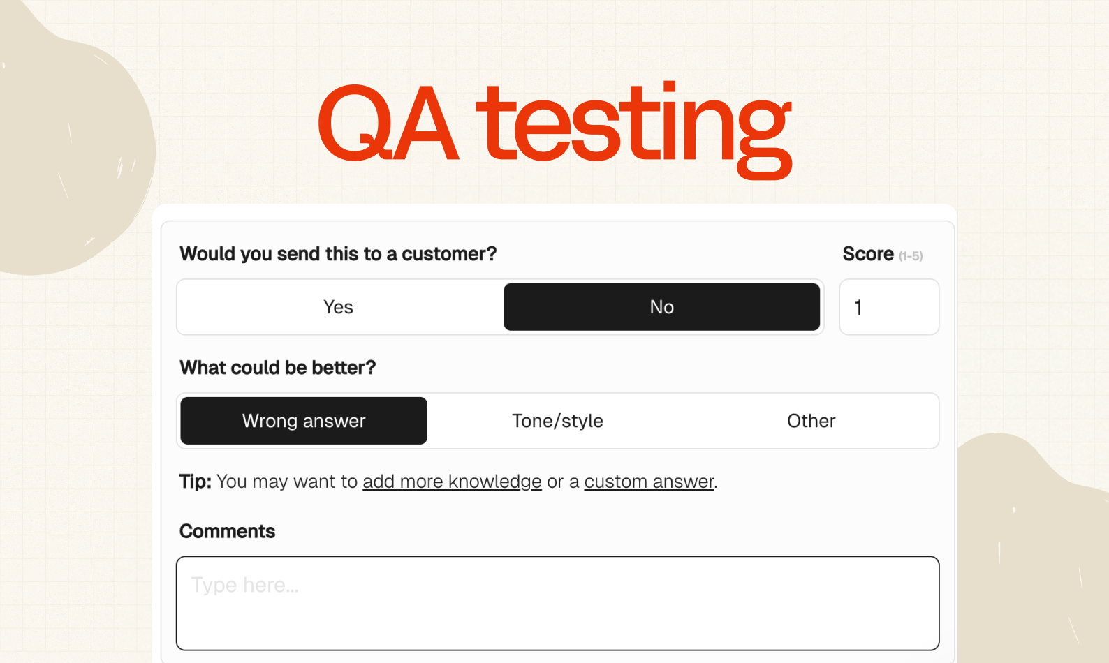 To use the new QA scoring go to Dashboard > Improve > Test then click on any of your test questions to start scoring.